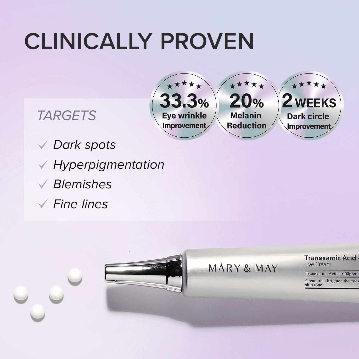 MARY & MAY Tranexamic Acid + Glutathione Eye Cream – Brightening & Anti-Dark-Circle Eye Treatment.